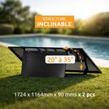 Structure, panneaux et micro-onduleur déjà assemblés. Posez au sol, branchez sur prise standard et c'est parti.